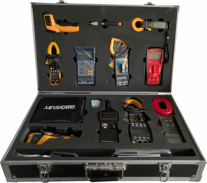 配置:1.红外测温仪2.红外热像仪(选配)3.超声波泄漏/放电检测测仪4.钳形接地电阻测试仪5.绝缘电阻测试仪6.漏电开关测试仪7.真有效值钳表8.普通钳形表9.可燃气体检测仪10.漏电电流钳表11.插座检测仪12.高精度数字万用表13.相序测试仪14.感应试电笔15.电力谐波/平衡分析仪16.线路故障定位寻踪仪17.高压验电器18、操作手册19.铝塑携带箱