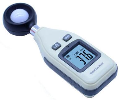 照度计是一种测量光度、亮度的专用仪器仪表。光照度是物体被照明的程度,即物体表面所得到的光通量与被照面积之比,单位为勒克司(lux,法定符号lx),图2-1。