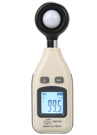 照度计(或称勒克斯计)是一种专门测量光度、亮度的仪器仪表。就是测量光照强度(照度) 是物体被照明的程度,也即物体表面所得到的光通量与被照面积之比。照度计通常是由硒光电池或硅光电池和微安表组成。