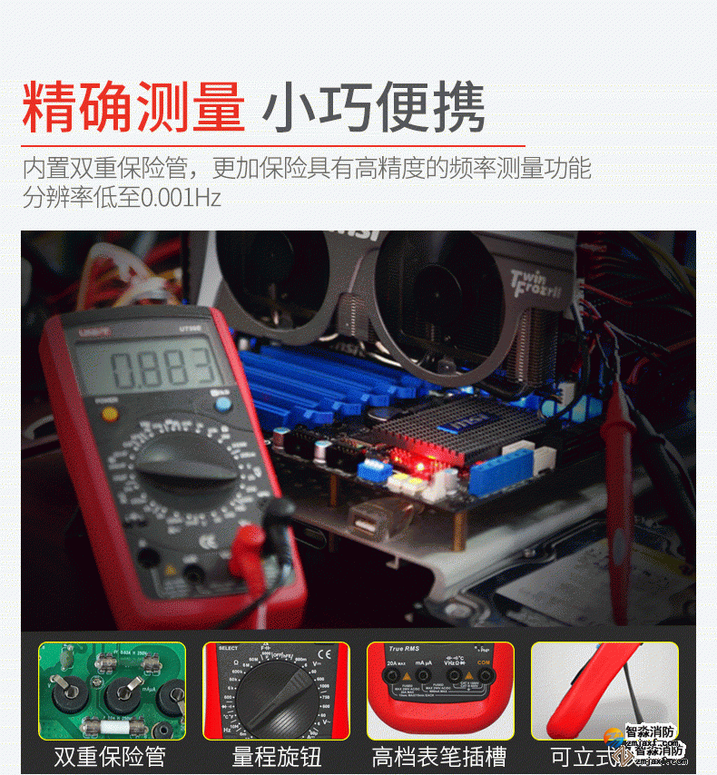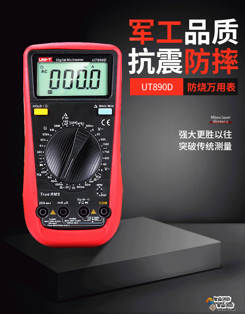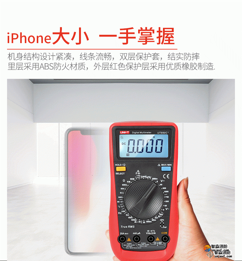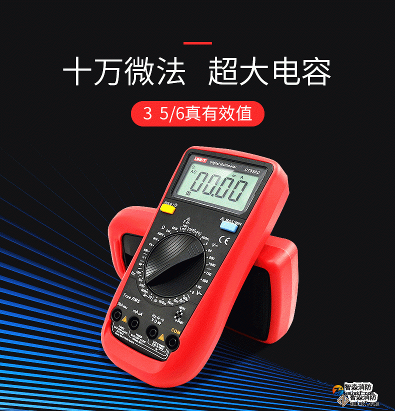 UT890系列全新一代手动量程数字万用表。自动量程100mF大电容档位,可快速测量音响功放,电源板等领域mF等级的大电容。该系列万用表具有真有效值,可准确进行非正常交流信号的有效测量;全量程保护,万用表在电阻档测试时不会由于误操作接入高压而引起烧表。在电子,家电,电器维修工作中,您需要一款耐用、可靠且精确的数字万用表。