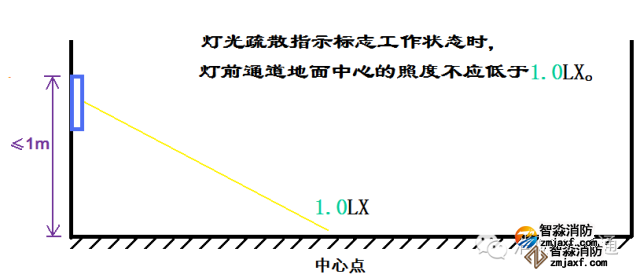 使用照度计测量应急照明灯地面中心最低照度不应低于0.5Lx,地下人防工程的照度不应低于5Lx,使用照度计测量消防控制室、消防水泵房、防烟排烟机房、消防用电的蓄电池室、自备发电机房、电话总机房等火灾发生时仍需坚持工作的房间正常照明时工作面的照度和应急照明时工作面的照度,图2-2、图2-3。